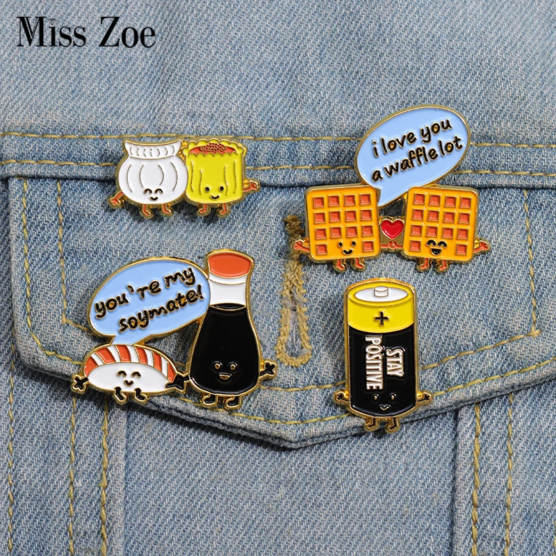Food Partner Enamel Pins Custom You're My Soymate Brooches Lapel Badges Vinegar Baozi Shaomai Jewelry Gift for Friends  Read more