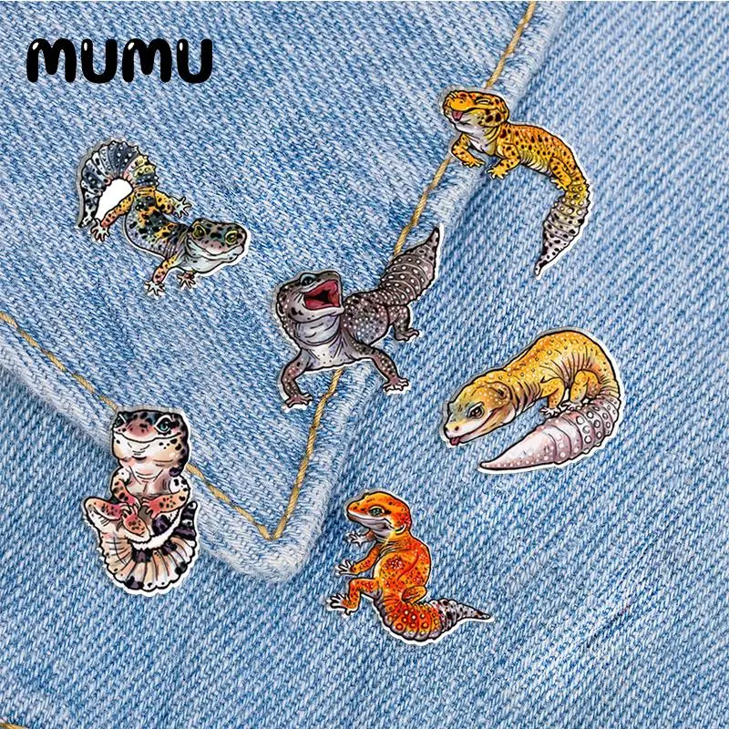 2023 New Leopard Gecko Lapel Pin Animal Acrylic Brooches Handmade Epoxy Jewelry Shirt Bag Badge