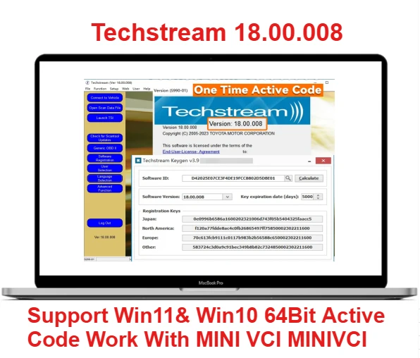 Newest Version For TOYOTA TIS Techstream 18.00.008 Software Link and Active Code Work with MINI VCI MINIVCI Support Win11/Win10