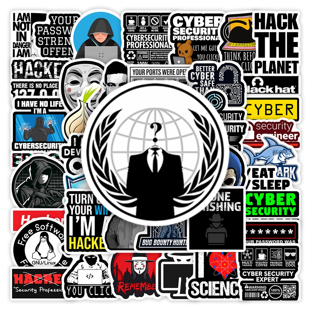 Cybersecurity Hackers Network Security Engineers Stickers Cracker Firewall Anonymous Waterproof Decal for Laptop Phone Bottles