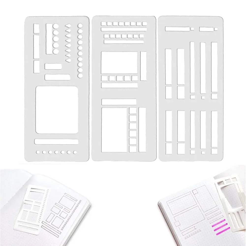 3Pcs/Set Creative Manual Handmade Flexible Record Template Dot Grid Reusable Log Planning Template Set Template Drafting Tool