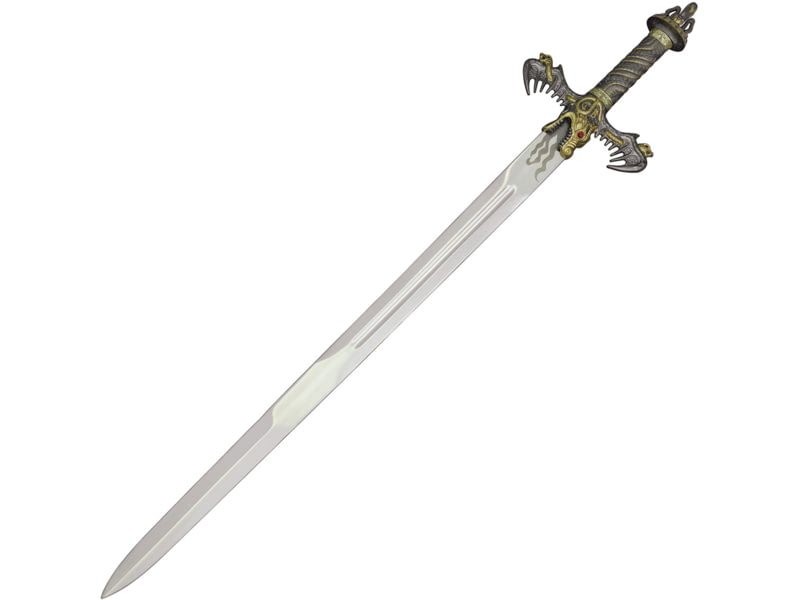 Gladius Gold Barbarian Sword 49in Overall 36in Stainless Blade Sculpted Metal Dragon-Shaped Handle 228