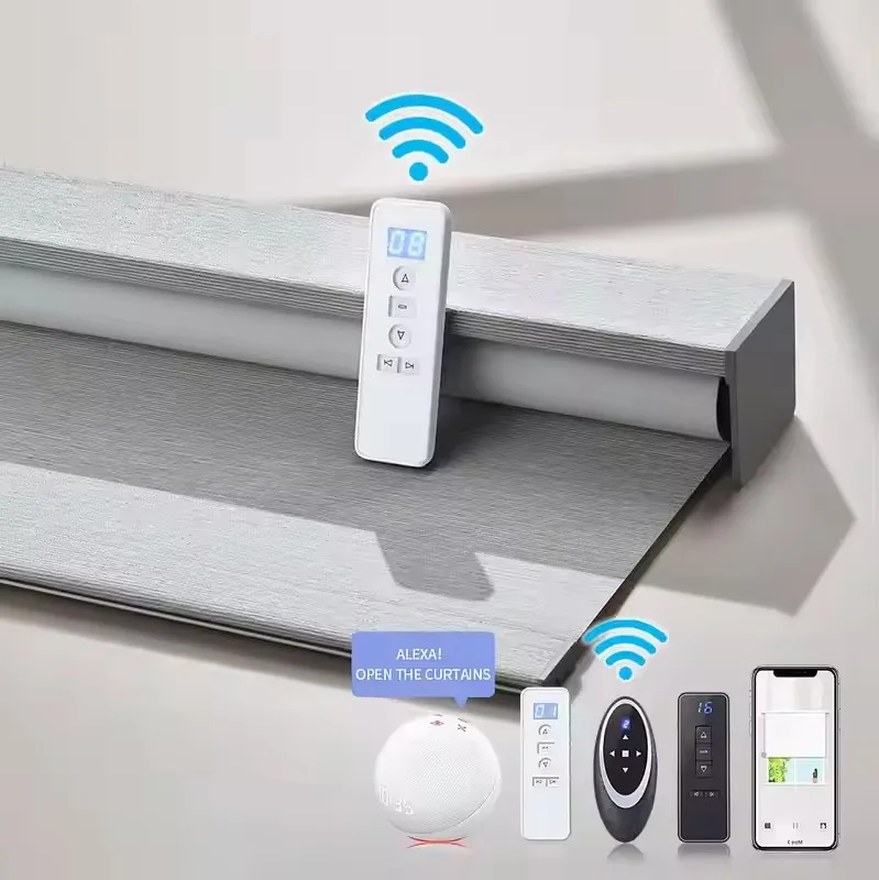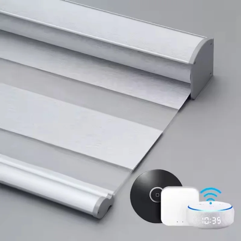 2025Customizable Blinds Polyester Fabric Horizontal Wifi Control Wireless Smart Home Motorized Zebra Roller Blinds For Windows