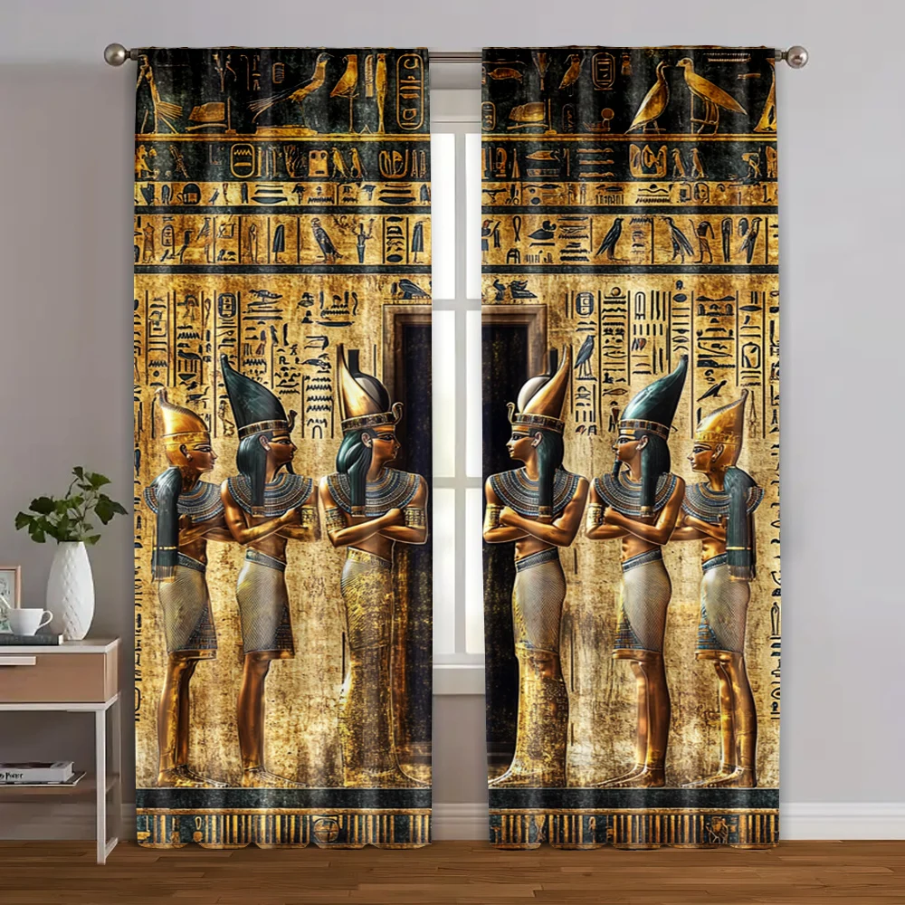 2pcs, Curtains Roller Blinds Ancient Egyptian Mural Machine Washable Fabric Thermal Insulation Versatile 100% Polyester (without