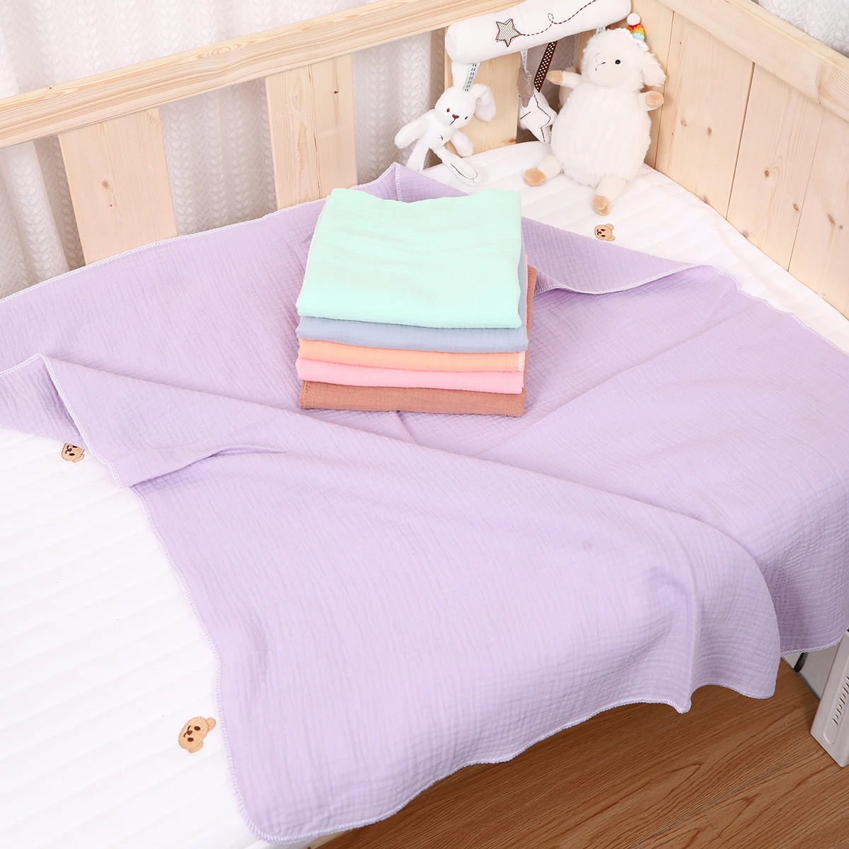 Baby Cotton Swaddle Blanket Muslin Bath Towel Newborn Crinkle Fabric Stroller Cover Wrap Gauze Toddler Sleep Blanket