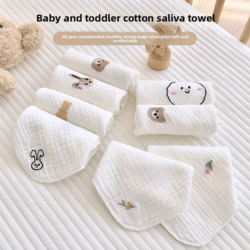 Newborn Baby Saliva Towel, Pure Cotton Gauze Embroidered Class A Small Handkerchief, Baby Face Towel, Suitable for All Seasons