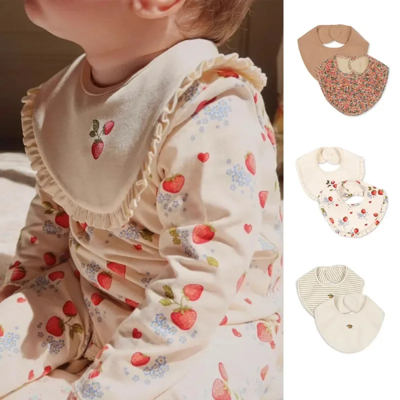 OUYANG&IVAN Baby Drool Towel 2025 Four Seasons New Cute Fruit Pattern Treasure Pure Cotton Absorbent Bib