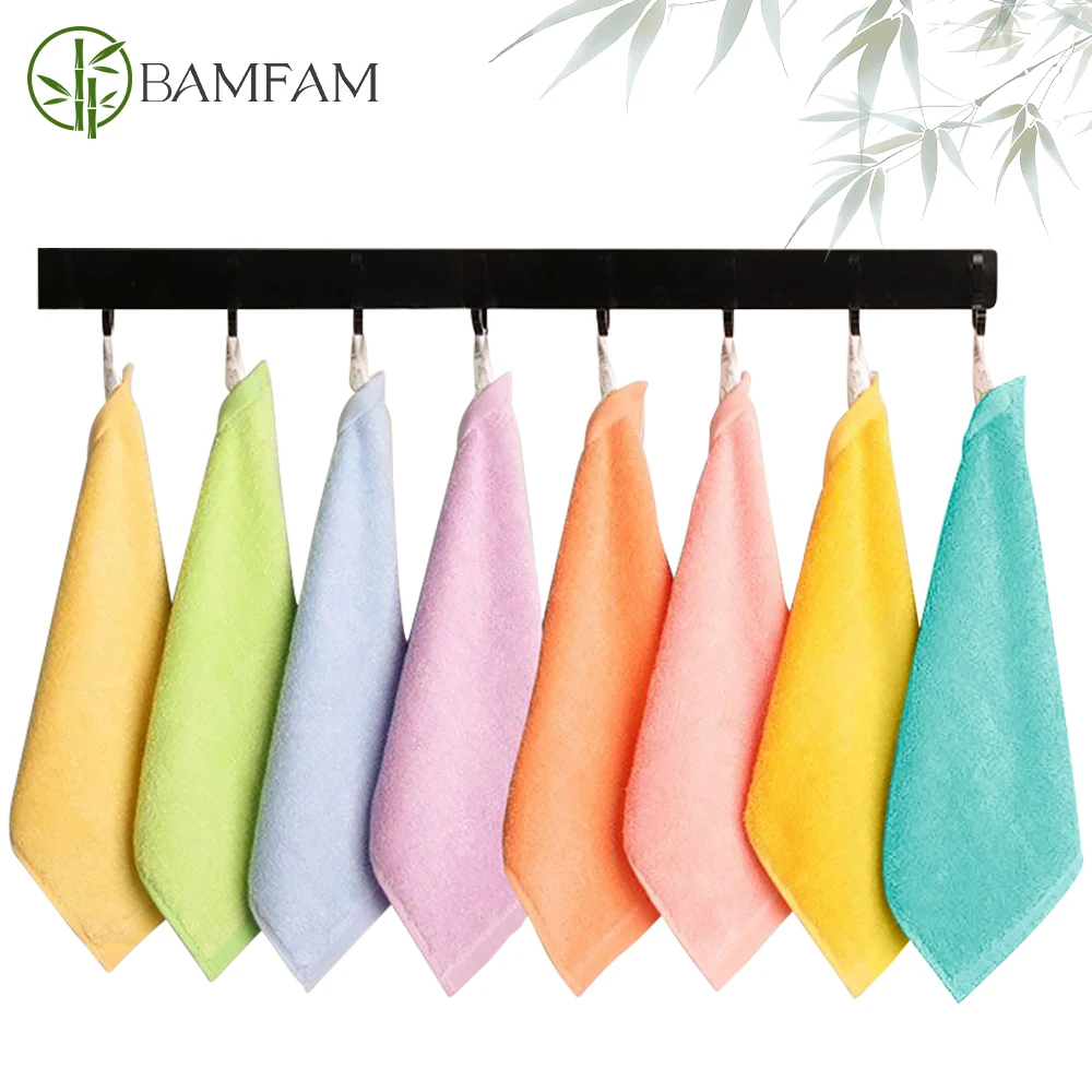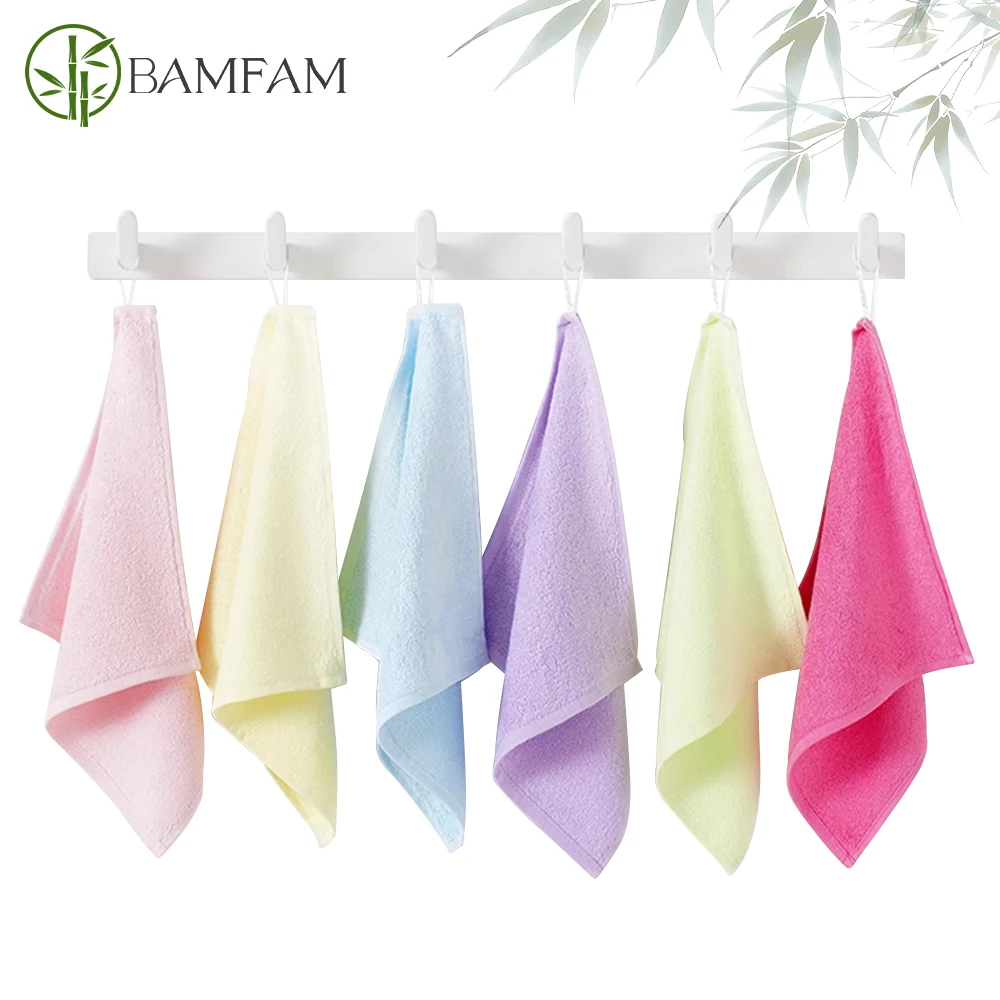 1/3/6pcs 25x25cm Small Square Towel Bamboo Fiber Kindergarten Kids Baby Hanging Towel Small Washcloth Bathroom Scrubbing Towels