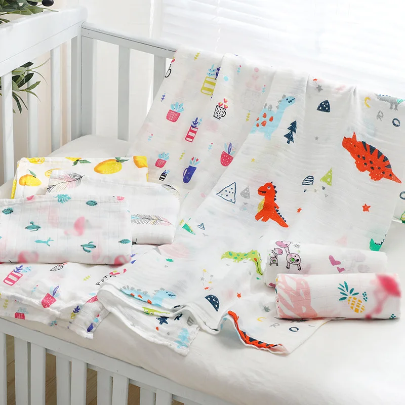 Baby Blanket Newborn Muslin Swaddle 2 Layer Cotton Bath Towel Summer Stroller Cover Wrap Gauze Toddler Sleep Blanket Baby Items