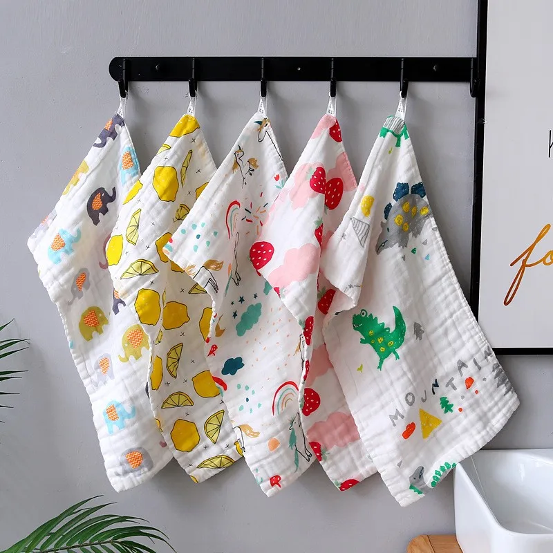 Baby Handkerchief Square Fruit Pattern Towel 25x25cm 25x50cm Muslin Cotton Infant Face Towel Wipe Cloth Baby Stuff for Newborns