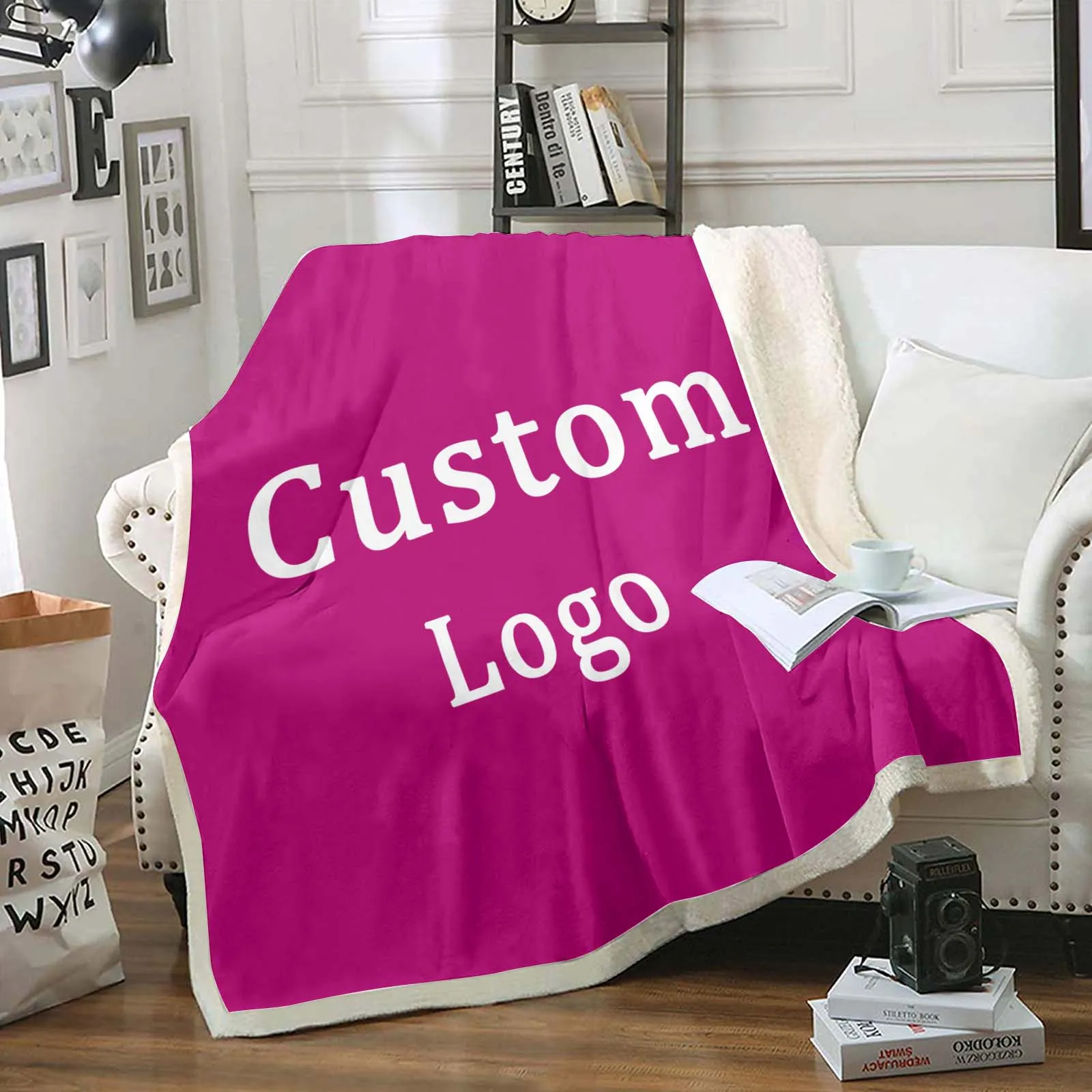 Customized Brand Logo Throw Blanket DIY Logo Print Sofa Sherpa Blanket Couch Quilt Bedspread for Kids Adults Plush Quilt