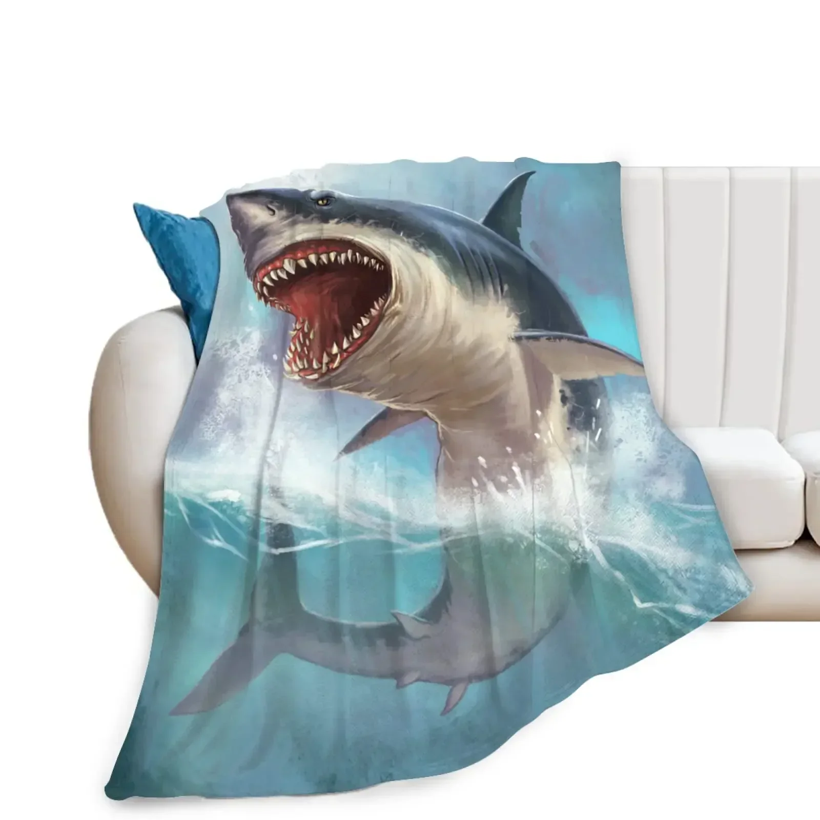 Deep Sea Shark Blanket Comfort Warmth Soft Cozy Easy Care Machine Wash Black Throw Blanket Quilt for Sofa Bed Home Decor Gifts