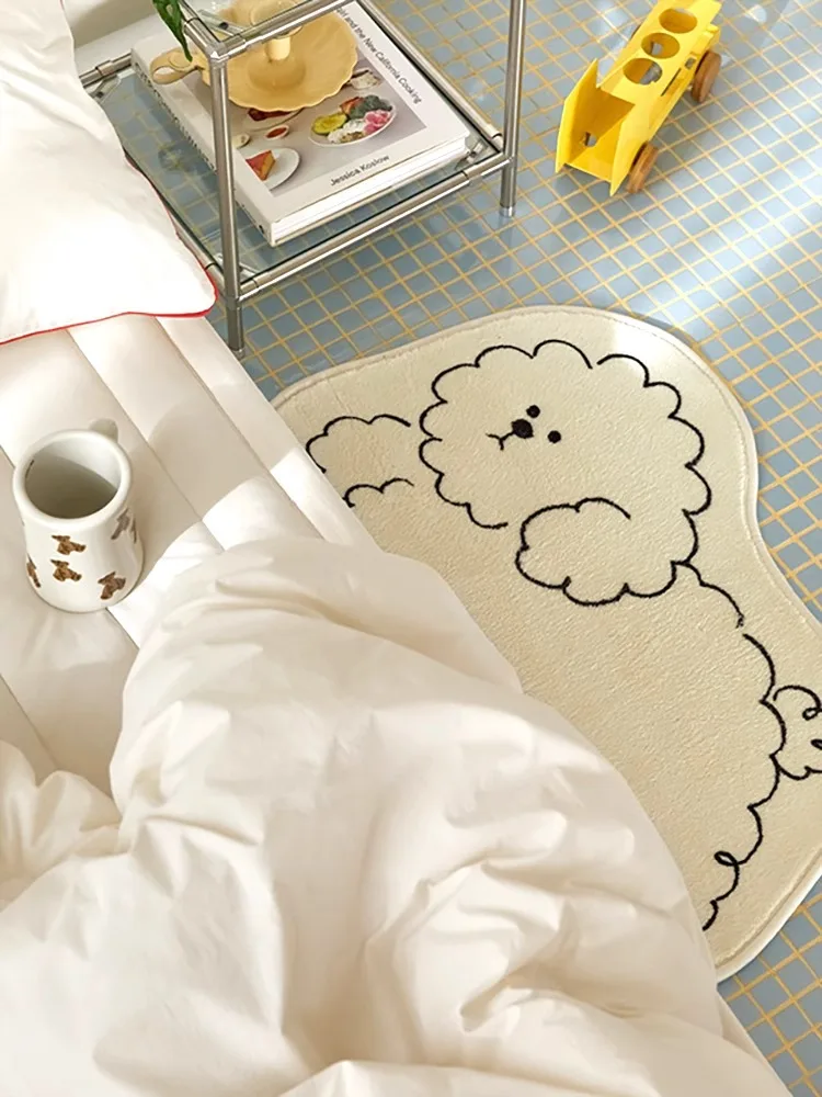 VIKAMA Ins Style Teenage Girl Cute Cartoon Dog Striped Carpet Entry Door Mat Sofa Coffee Table Footrest Bedroom Bedside Blanket