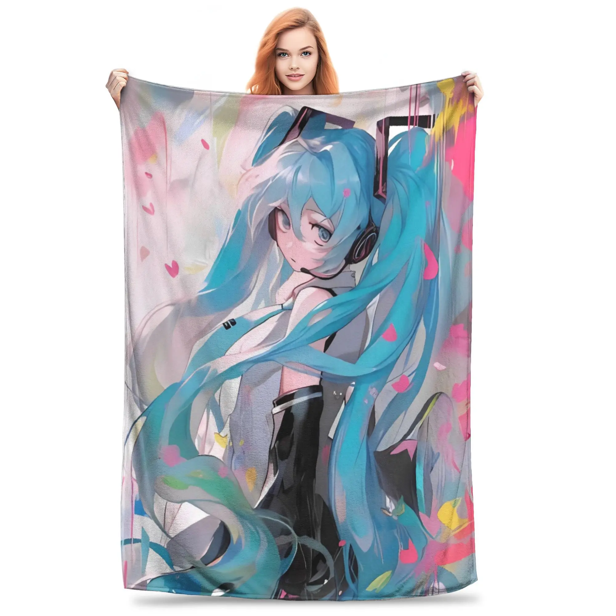H-Hatsune M-Miku Warm Soft Blanket Boy Girl Plush Throw Blanket Street Trend Couch Chair Flannel Bedspread Sofa Bed Cover