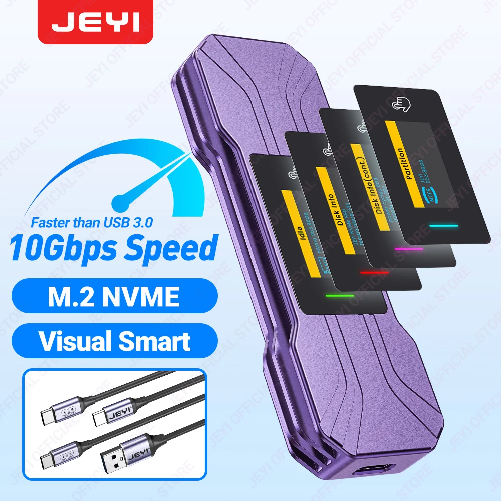 JEYI Visual Smart M.2 NVMe SSD Enclosure with Touchscreen, USB3.2 10G External M2 Adapter Super Cooling Design Support UASP Trim