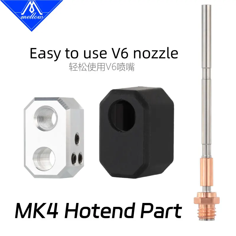Mellow MK4 Hotend Parts Titanium&Copper Heatbreak Thorat/ Aluminum Heat block / Socks For XL MK4 3D Printer V6 Nozzle