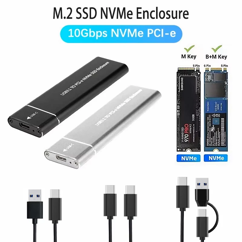 USB3.1 M.2 SSD Enclosure Mobile Case Supports NVME Protocol To Type-C Solid Metal External Hard Disk Case Laptop Phone SSD
