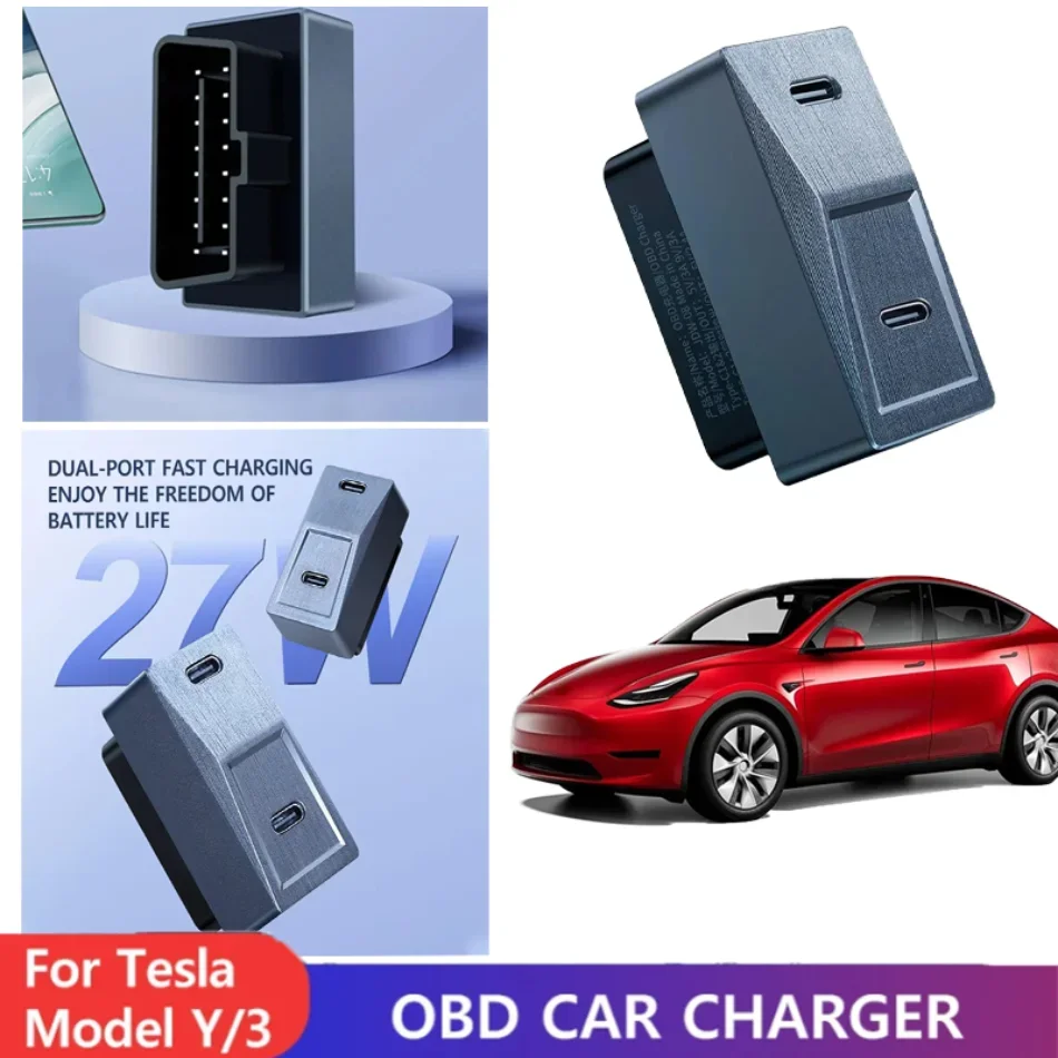 1PC Car OBD Fast Charger for Tesla Model 3 Y X S Mobile Phone Charging Adapter OBD2 Splitter Charger Adapters Accessories