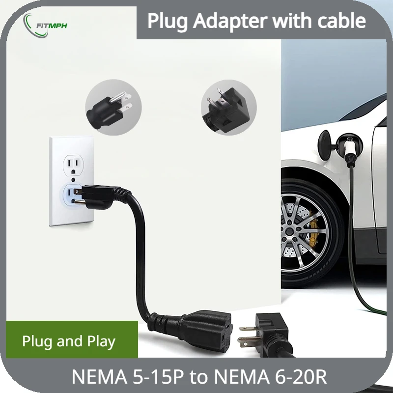 FITMPH NEMA 5-15p TO 6-20R Adapter for ev charging - Level 2 -Level 1