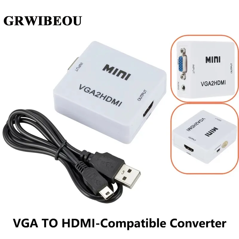 GRWIBEOU 1080P VGA 2 HDMI Audio Adapter Connector VGA2HDMI Mini VGA to HDMI Converter with Audio for PC Laptop to HDTV Projector