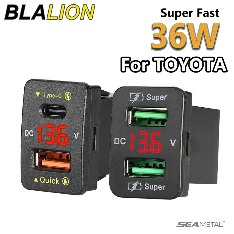 BLALION 45W 5A QC PD 3.0 USB Car Charger Auto Mobile Phone Charger Adapter Fast Charging LED Voltage Display for Toyota Series