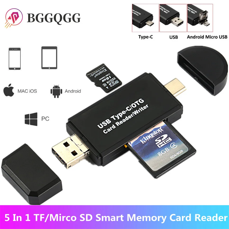 5 In 1 USB C Card Reader SD Card Reader USB 2.0 TF/Mirco SD Smart Memory Card Reader Type C OTG Flash Drive Cardreader Adapter