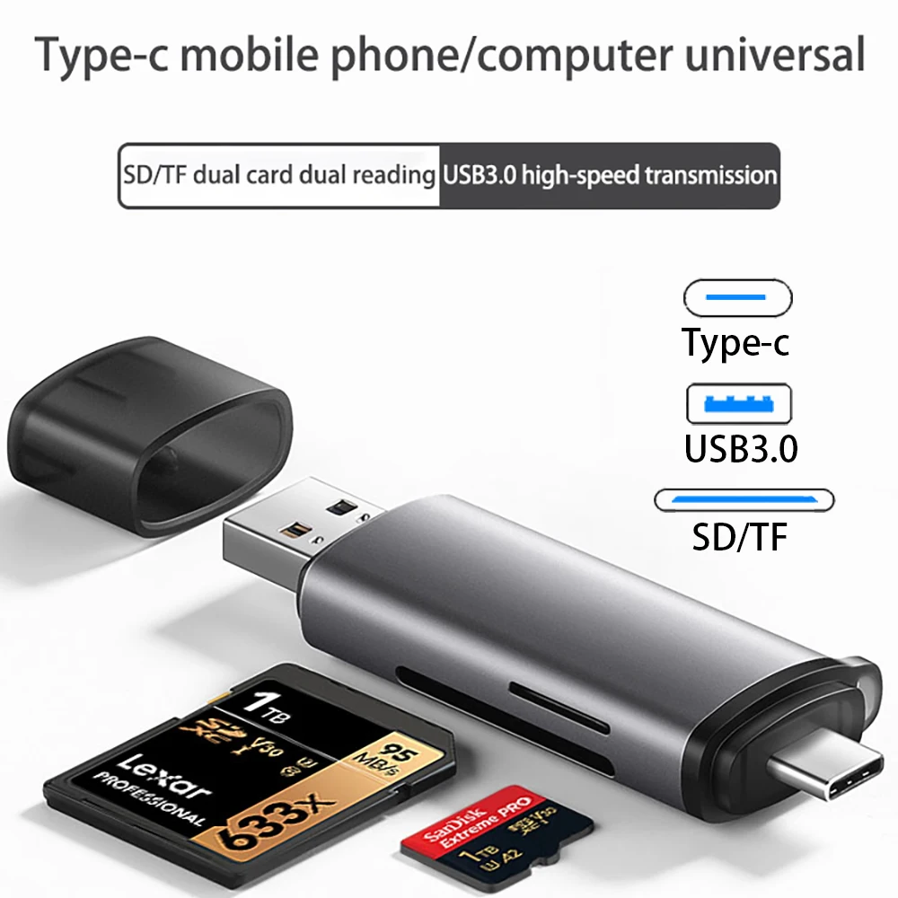 OTG Dual SD/TF Card Reader With Type C USB 3.0 And Micro USB Interfaces High Speed Writing Suitable For Mobile Phones PC