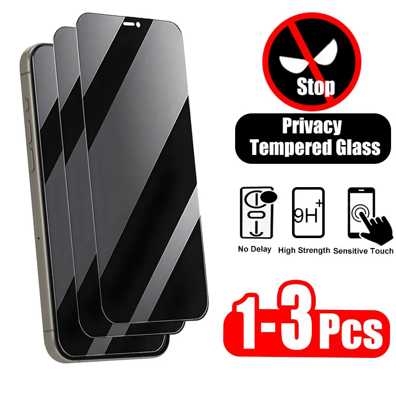 3Pcs Privacy Screen Protector For iPhone 16 15 14 13 12 Pro Max Mini 7 8 Plus Anti-spy Protective Glass For iPhone X XR XS Max