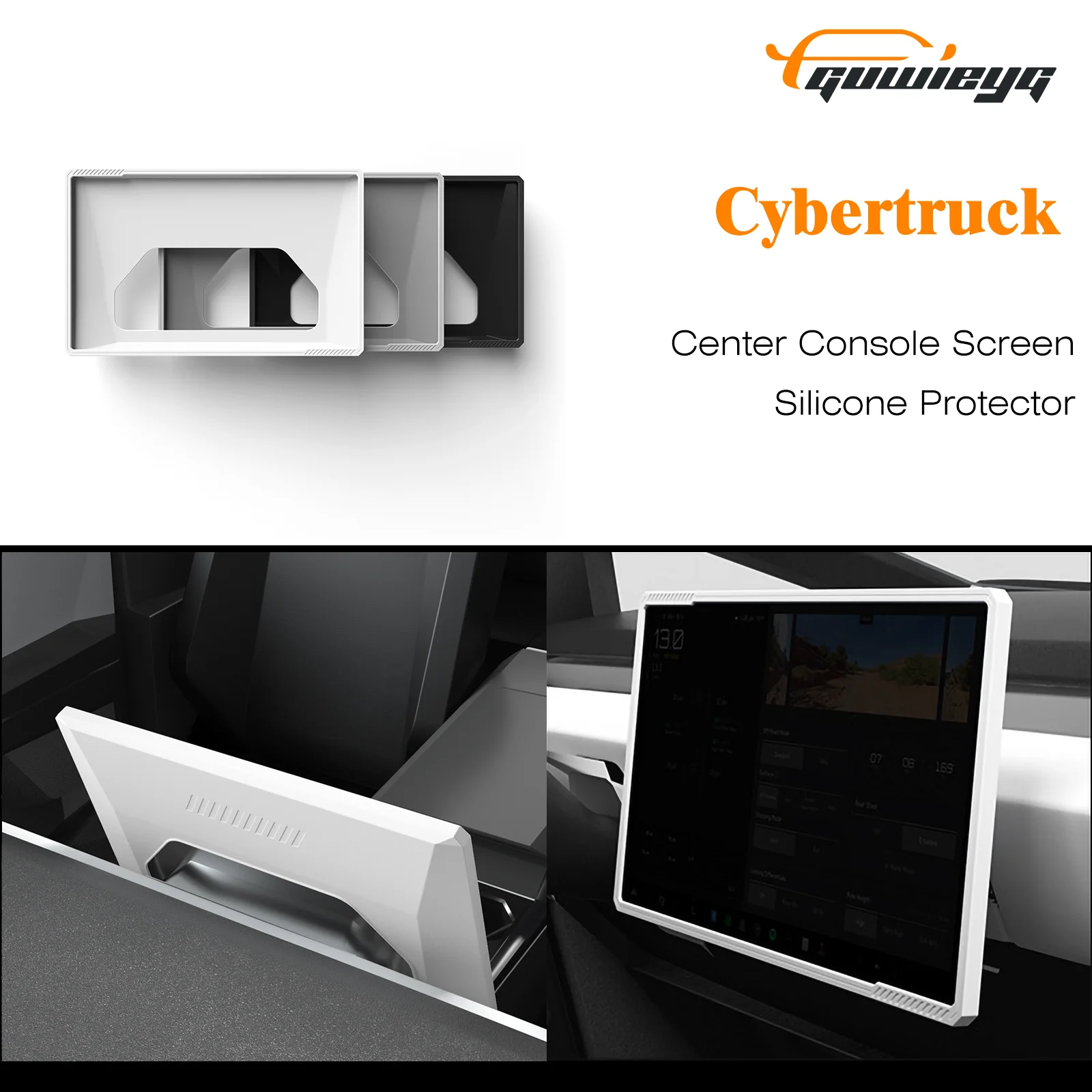 For Tesla Cybertruck - Silicone Center Screen Protector, Anti-Crash Frame Accessory