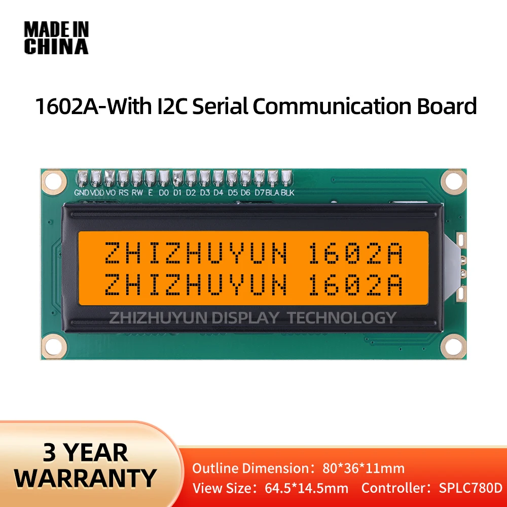 LCM1602A IIC Adapter Board Orange Light Black Characters LCD Screen Module PCF8574T PCF8574 I1C12C Interface 5V