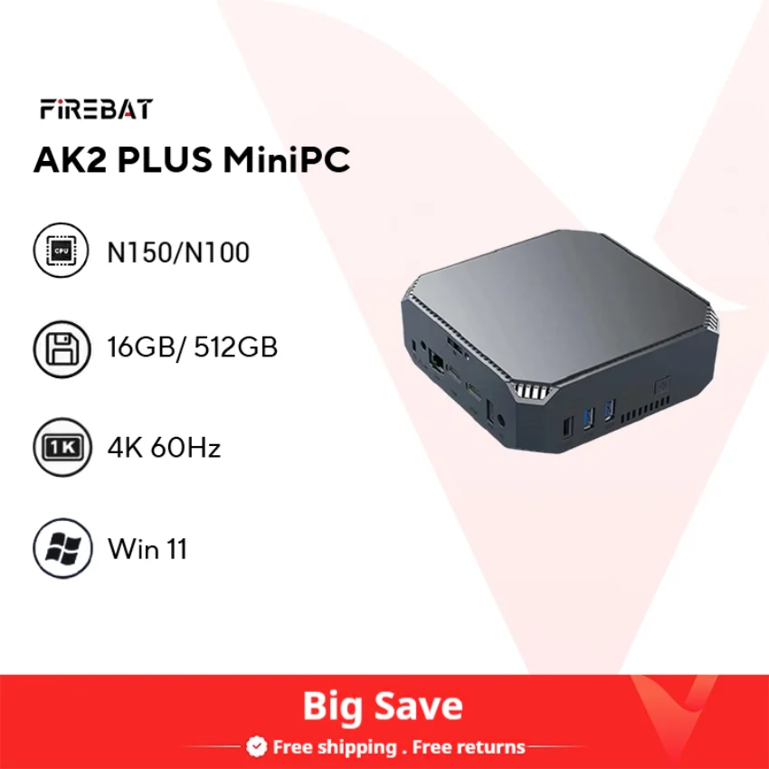 FIREBAT AK2 PLUS Mini PC Gamer Intel N100 CPU Windows 11 Mini PC Gaming DDR4 16GB RAM 512GB SSD NVME M2 WIFI5 BT4.  Read more