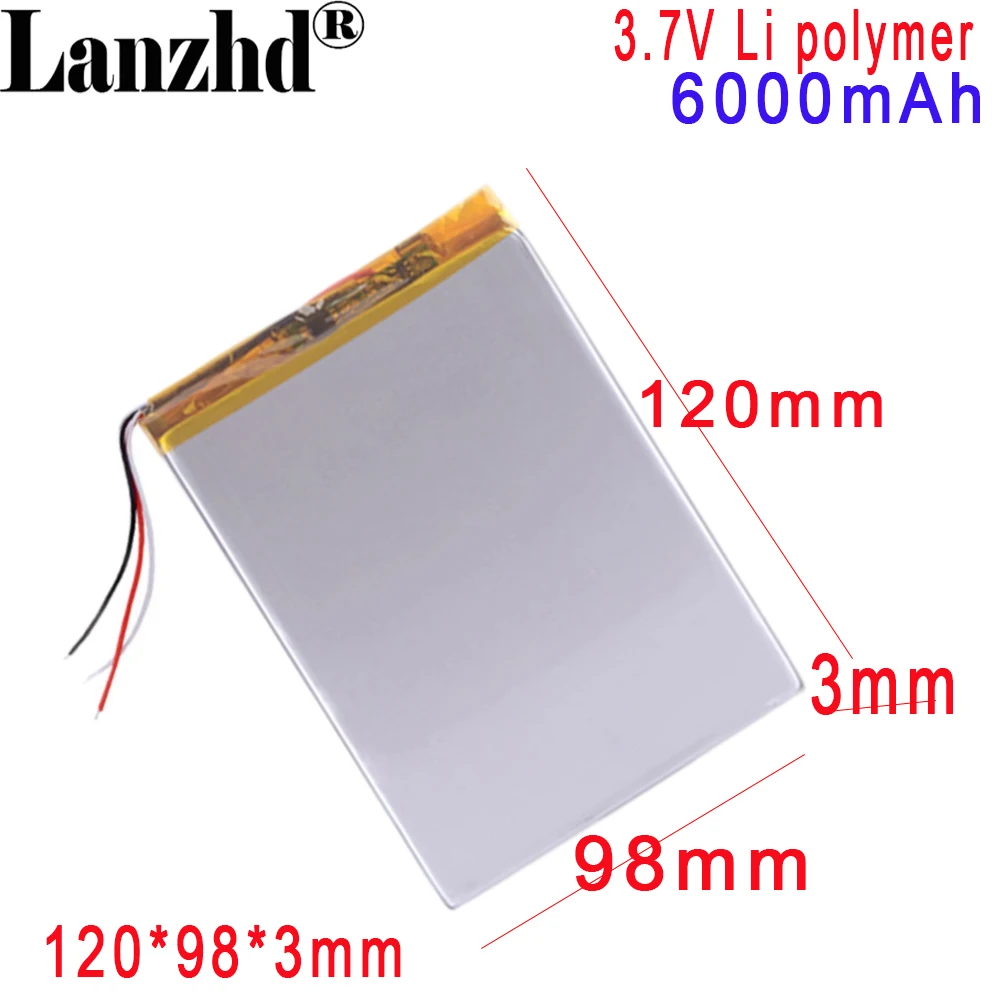 New 3.7V 6000mAh 3098120 30100120 For tablet battery each brand tablet universal Tablet PC Battery 120*98*3mm