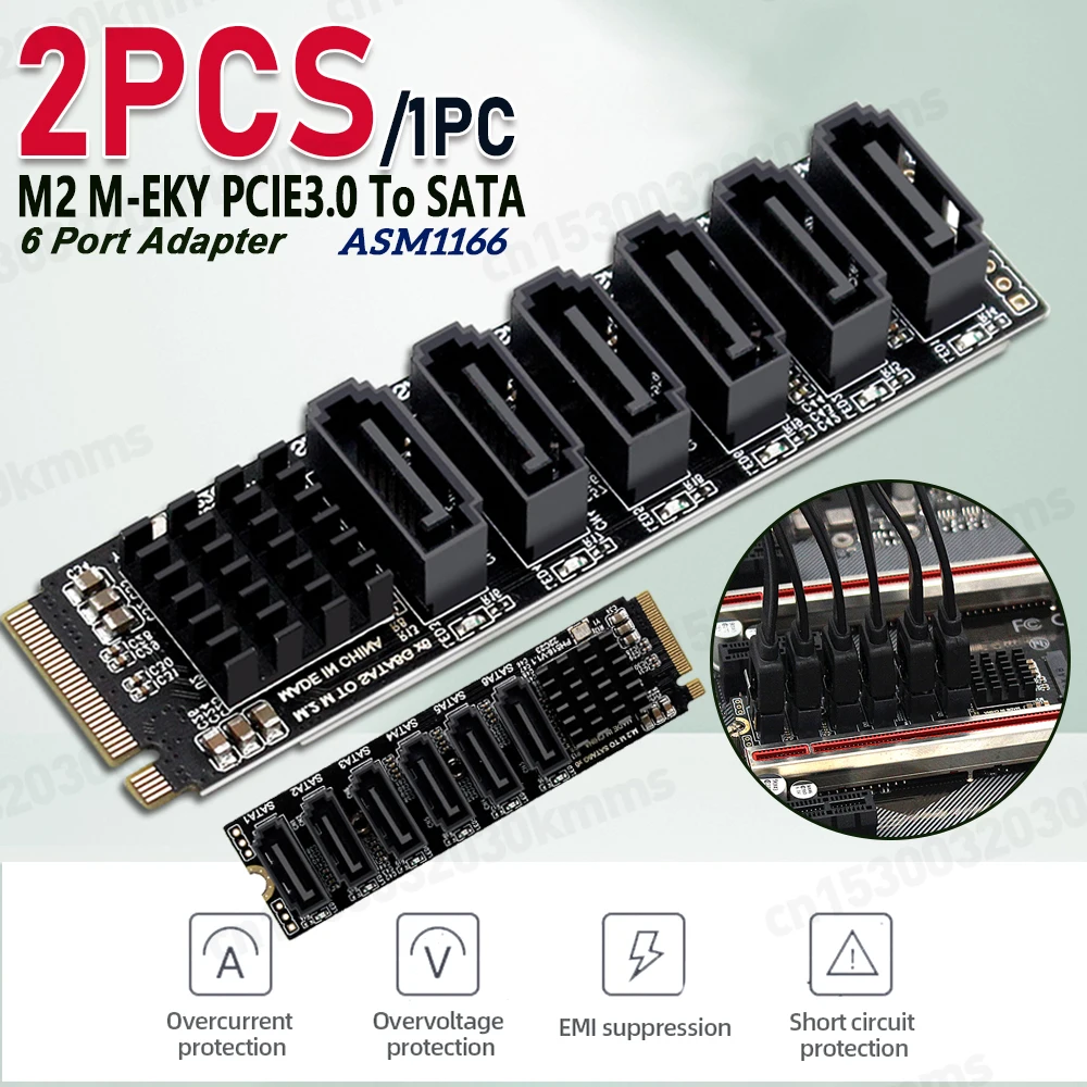 2/1PC M.2 NVME PCI-E PCIE X4 X8 X16 To 6 Port 3.0 SATA Adapter Card Riser III ASM1166 6GB/S Chassis server PC Computer Expansion
