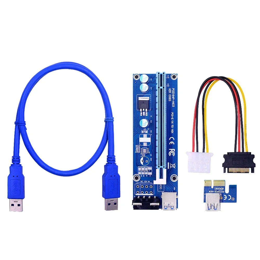 PCI-E Riser Card 60CM USB 3.0 Cable SATA to 4Pin PCI Express 1X to 16X Extender Adapter for Graphics Card