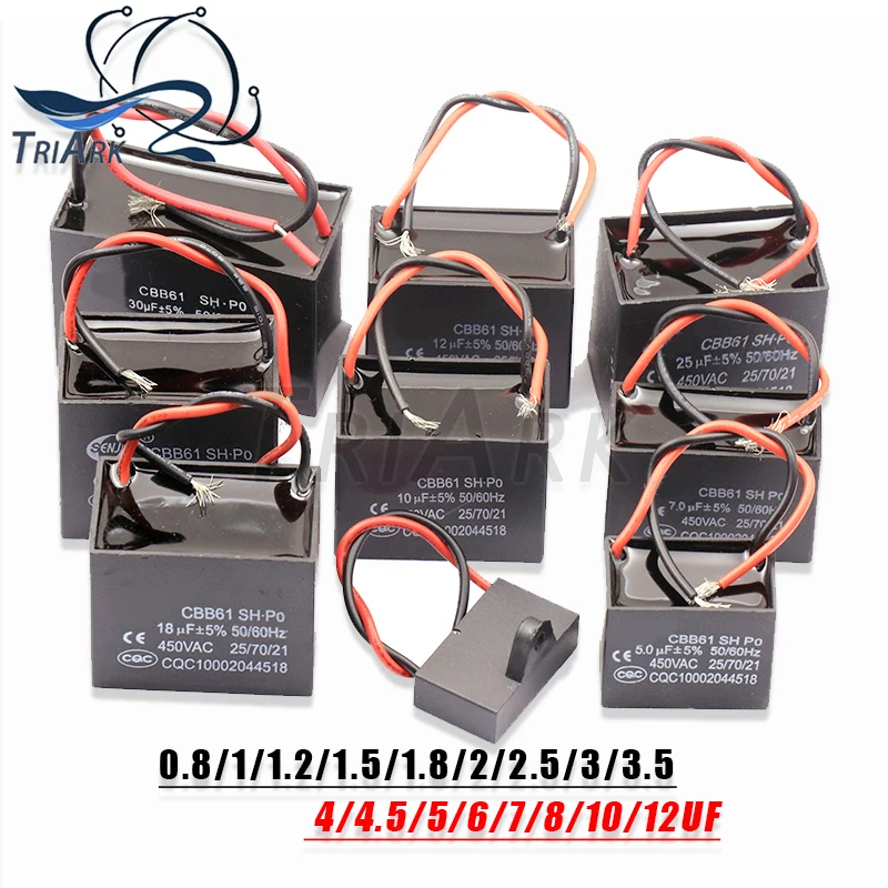1PCS CBB61 450V Start Capacitor 0.8 1 1.5 1.8 2 2.5 3 4 5 6 7 8 10 12 15 18 20UF Fan Ceiling Exhaust Motor Run Capacitor CBB61