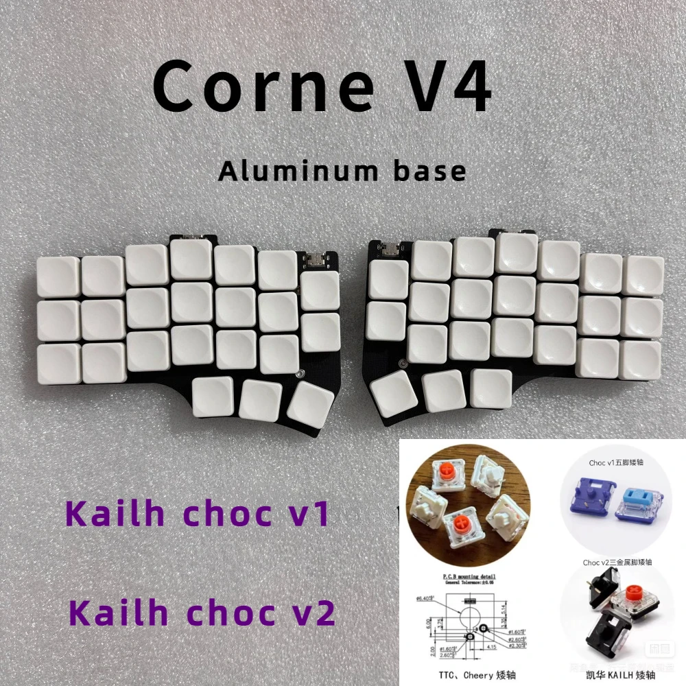 Corne V4 Choc V1 V2 Low Profile Split Keyboard Aluminium Base Welding Kailh Switch Wired RGB Separate Keyboard Kit QMK/VIAL