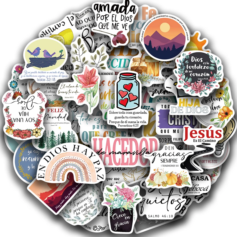 50pcs Spanish Bible Phrase Stickers Christian Jesus Decals For Stationery Phone Laptop Waterproof Cartoon Sticker Kid Toys  Read more