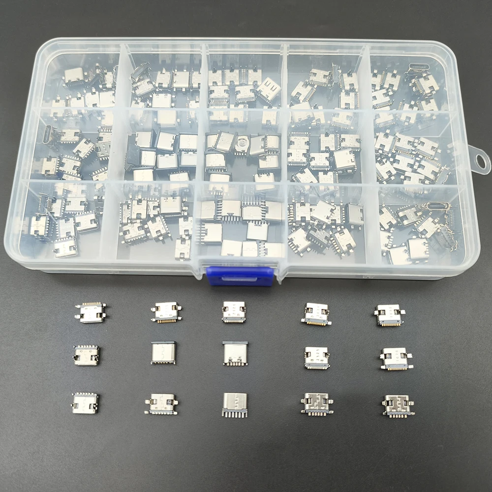 150Pcs/Box 15Models USB Type C Charging Port Dock Connector 6/16Pin USB-C Socket PCB Soldering Jack Mobile Phone DIY Repair Kit