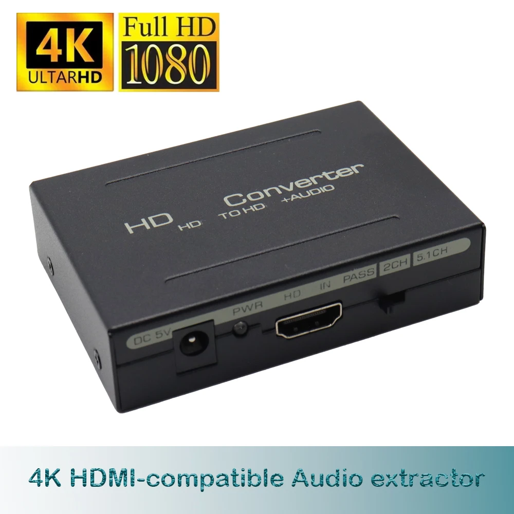 4K Audio Splitter Extractor Stereo HDMI-Compatible to HDMI-Compatible and Optical TOSLINK SPDIF + 3.5mm For PC PS4 TV DVD