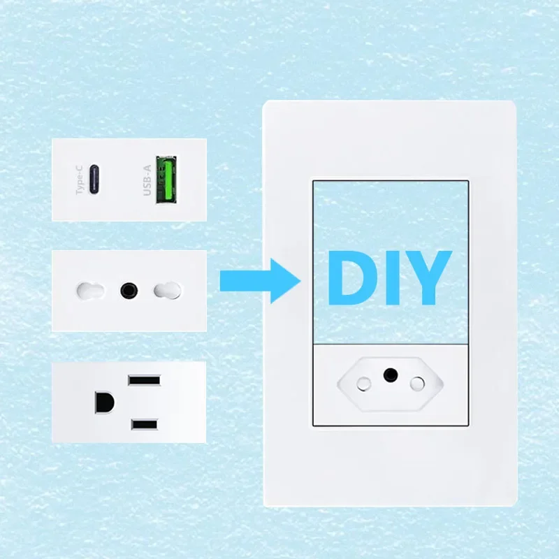 Brazilian Italian Chile US EU Standard PC panel Free Combination Function USB Type C Key DIY Switch Socket 118mm*75mm White  Read more