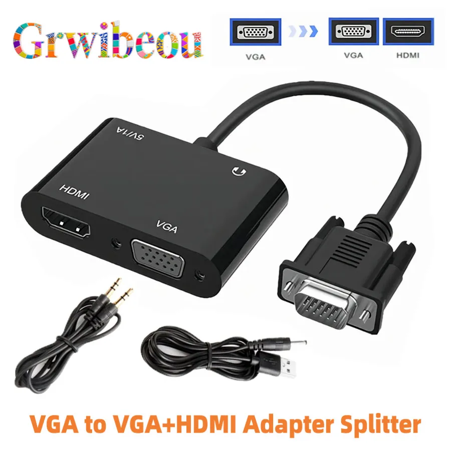 VGA to VGA+HDMI-compatible Adapter Splitter With 3.5Mm Video Audio Converter Support Dual Display For Projector TV Multi-Port PC  Read more