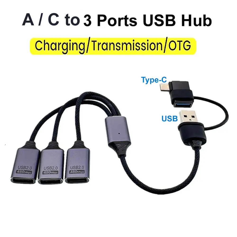 3 in 1 OTG Splitter Cable USB Type C To 3 Port USB Female Fast Charging Data Transfer HUB USB2.0 Extension Converter Cable