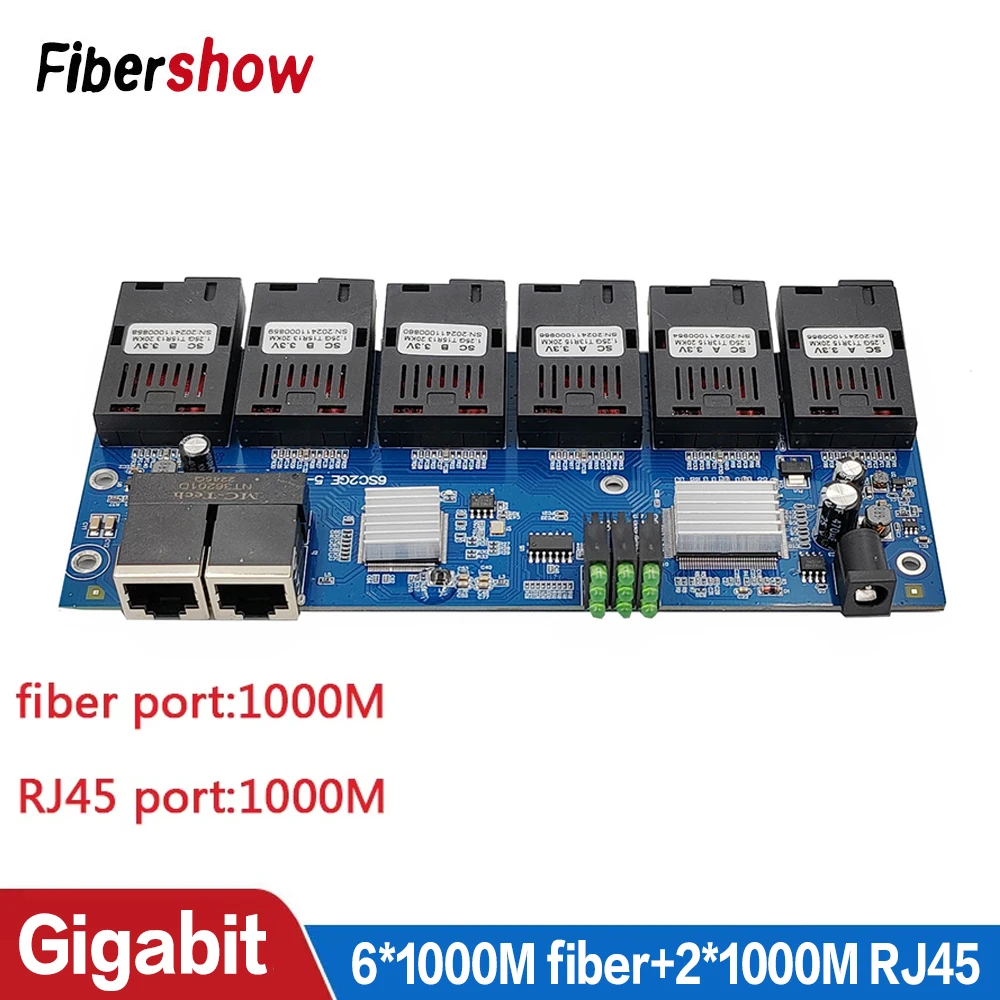 Gigabit Ethernet Switch 6*1000M Fiber optical switch 2*1000M RJ45 UTP 6F2E SC media Converter 6SC 2RJ45