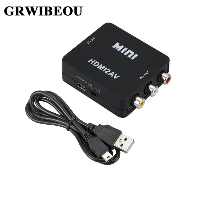 Grwibeou HDMI TO AV Scaler Converter Box HD Video Composite Adapter HDMI to RCA AV/CVSB L/R Video 1080P Mini HDMI to AV Adapter