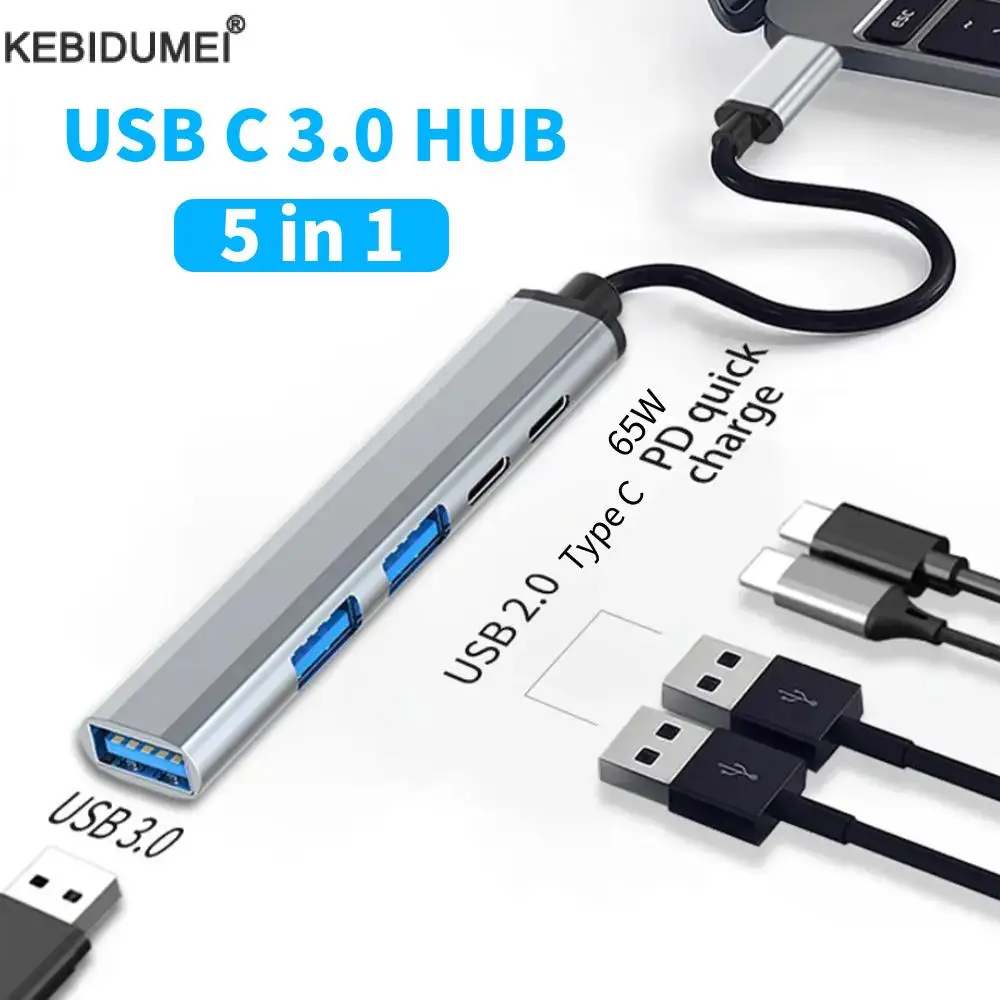 USB Type C Hub 4/5Port Adapter USB3.1 Multiport Splitter Docking Station UltraSlim High Speed Aluminum For Computer Laptop PC  Read more