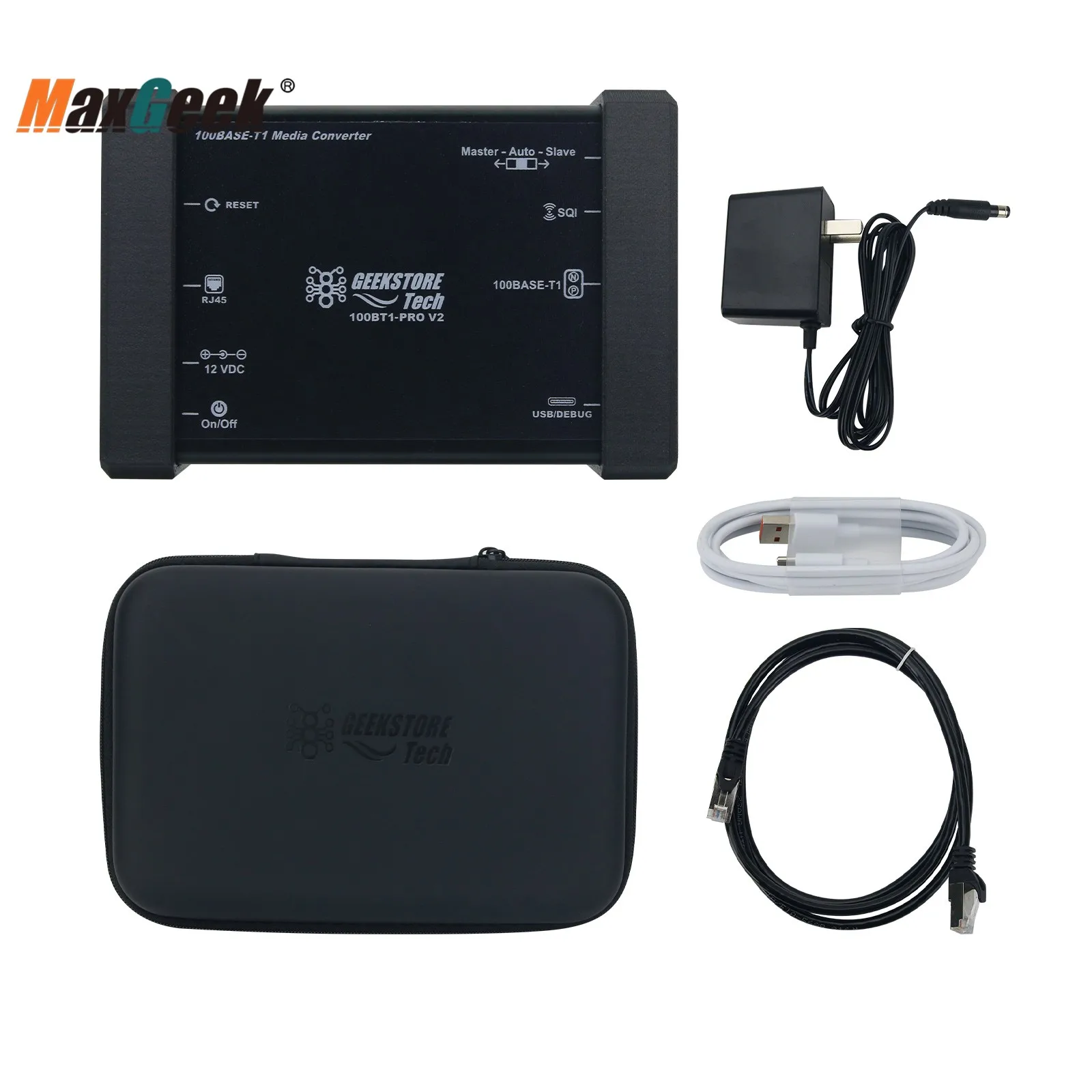 Maxgeek 100BT1-PRO2 100Mbps Vehicle Ethernet Converter to RJ45 Standard Ethernet Media Converter with HMTD Interface (optional)