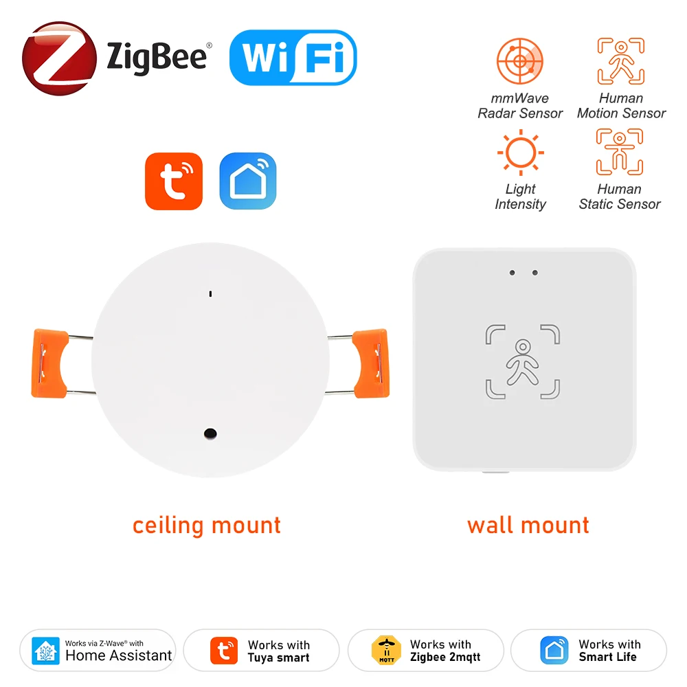 Smart Life Zigbee Human Presence Detector Tuya Wifi MmWave Radar Pir Motion Sensor With Luminance Detection For Smart Home