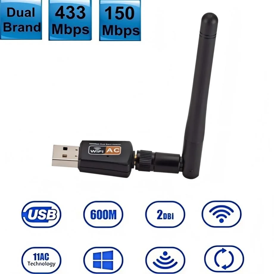 600Mbps Dual Band USB WIFI Adapter 2.4GHz 5GHz WiFi with Antenna PC Mini Computer Network Card Receiver for Laptop Mini Pc