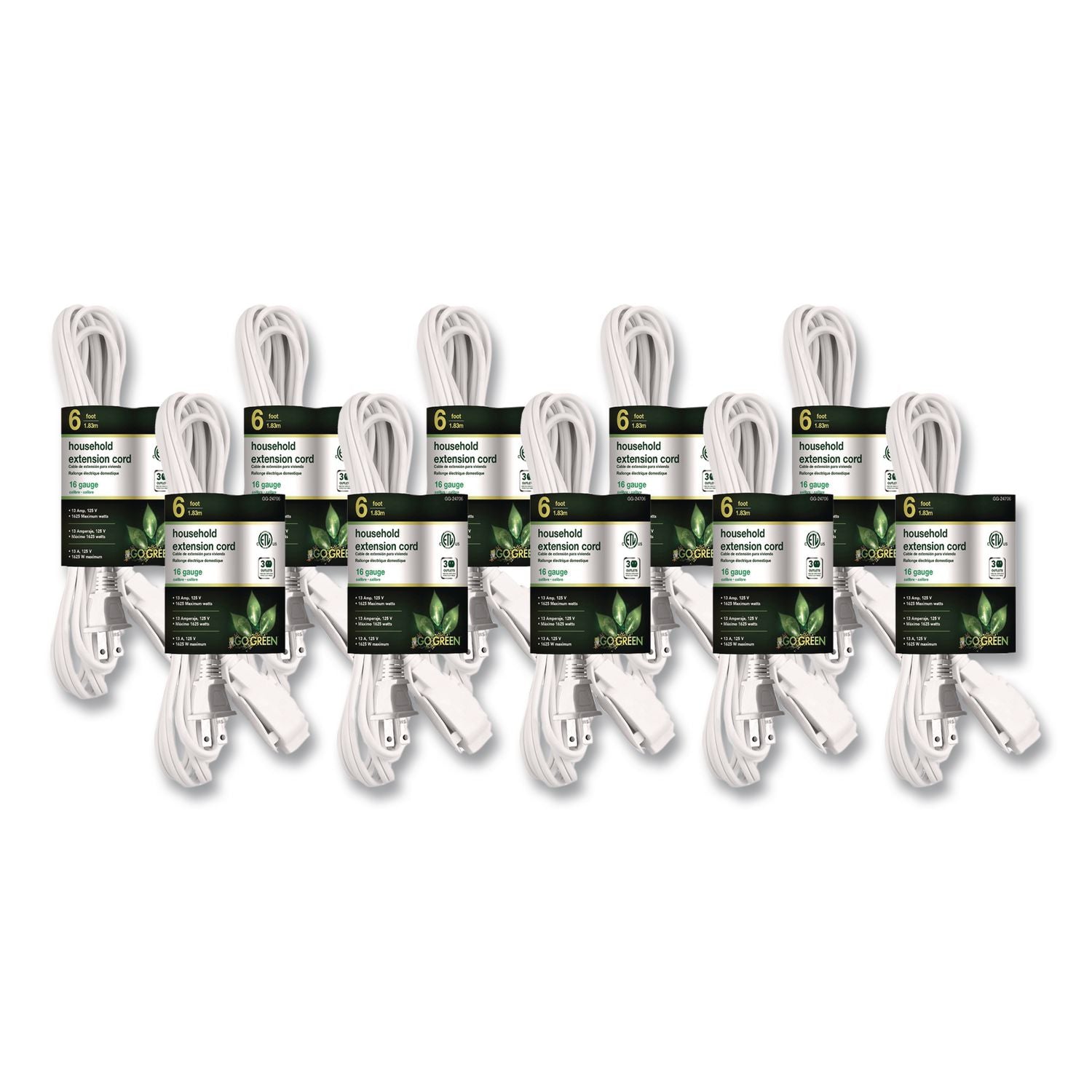 GoGreen Power Household Extension Cord, 6 ft, 13 A, White 10/Pack (GGPGG2470610)