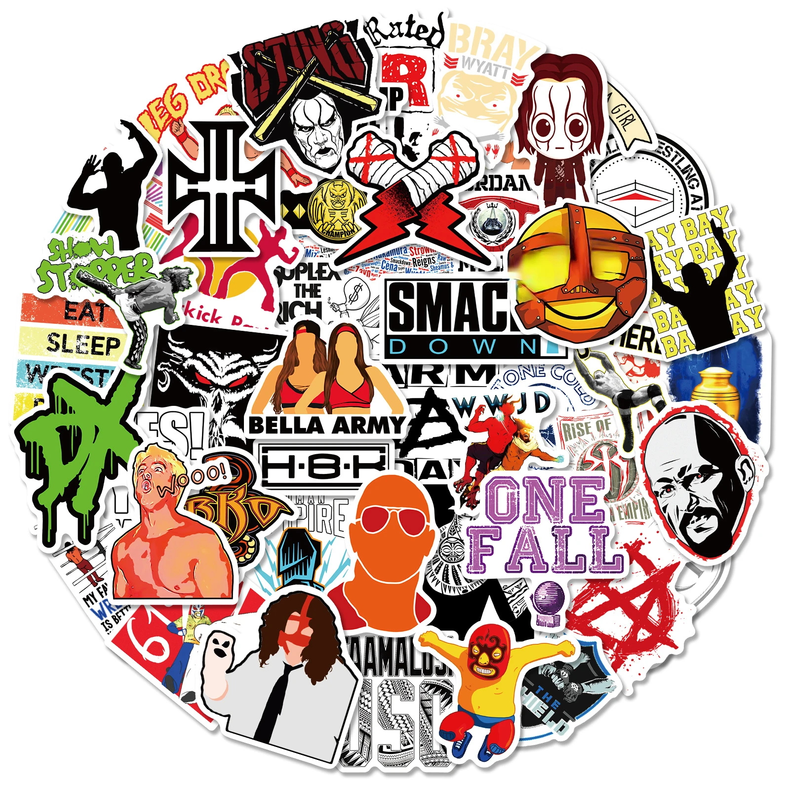 50pcs Text American Wrestling Trolley Case Guitar Skateboard Cute Graffiti Body Waterproof Sticker
